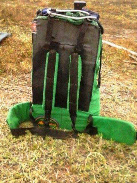 (mochilas verde fosforecente y fucsia, carpas neón y