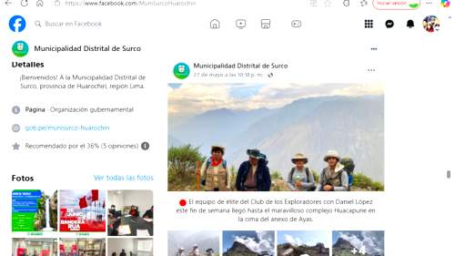 el facebook de la Municipalidad se anuncio nuestra