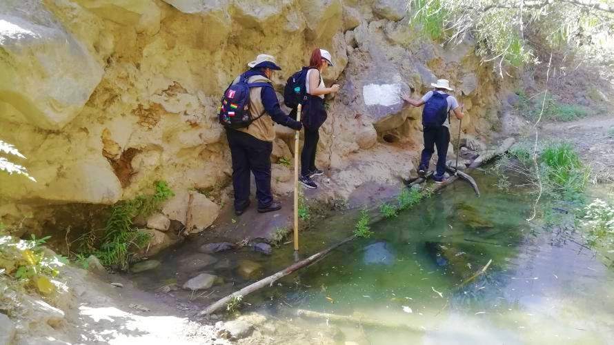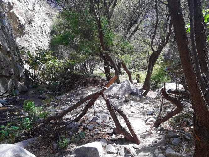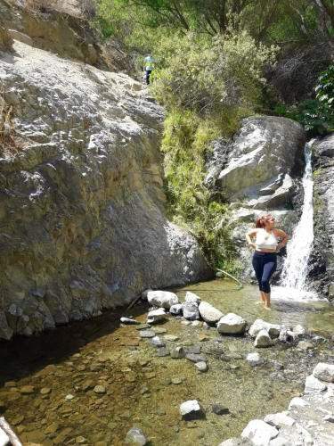 En esta quebrada podemos seguir el riachuelo aguas arriba y ver una pequeña caída de agua (ni cascada, ni catarata, CASCADA es a partir de 25m y CATARATA a partir de 50m).