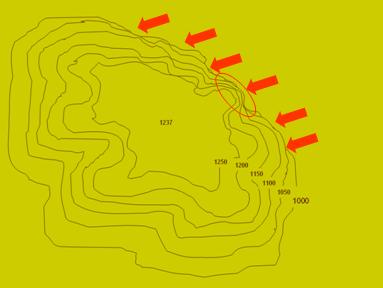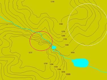 abajo puede notarse las curvas de nivel, las
