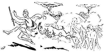 brincado de pronto y dicho: "Basta de golpes. Ya me