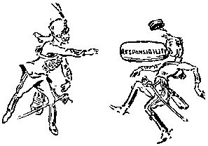 Pues bien, en unos cuantos minutos yo era un hombre distinto. Ahora era un hombre sobre quien pesaba una gran responsabilidad. En vez de aquel muchacho que nada le importaba y que no tenía más meta que divertirse. Me encontraba con una seria perspectiva enfrente y una gran visión de lo que podría hacer para bien de mis hombres y por el nombre de mi regimiento, me metí de lleno en el trabajo en cuerpo y alma y nunca volví la cara atrás. Aquella entrevista con el coronel tan corta corno fue, fue realmente el punto de partida de mi carrera. Y desde aquella lección de responsabilidad, pude ascender todos los escalones de mayores responsabilidades, uno después de otro. Si vosotros habéis de hacer algo en vuestra carrera, tenéis que asumir responsabilidades. Para ser capaz de asumir una responsabilidad se necesita confianza en sí mismo, conocimiento del trabajo que se va a desempeñar y práctica en ejercer responsabilidades. En la Armada Real a este hecho se le da gran importancia y lo ejercitan con los jóvenes. A un marinero común y corriente se le da responsabilidad en el manejo de un bote con su equipo y se le concede alabanza o vituperio de acuerdo con la forma en que lo haga. Esto mismo sucede también en los Scouts. El Guía de Patrulla es la autoridad responsable de la eficiencia y comportamiento de sus seis Scouts y lo mismo con los Rovers (véase el capítulo final) y su Guía Rover. Una vez que os hayáis acostumbrado practicando desde el principio, desde la niñez a asumir responsabilidades, os habréis hecho hombres. Esto fortalece el carácter y os ayuda para asumir más altos puestos en vuestra profesión. Así también fortalece vuestra influencia para el bien con respecto a vuestros semejantes. Imhlala-panzi He aquí una sugerencia útil, que hace quien la ha puesto en práctica con éxito. Viene del Mariscal Foch, uno de los más grandes generales franceses de la guerra del catorce. Dice: "Cuando tengáis un trabajo que ejecutar, consultadlo cuidadosamente. 1o. Ved si entendéis exactamente qué es lo que tenéis que hacer y qué es lo que váis a conseguir. 2o. Entonces formulad vuestros planes de ejecución. 3o. Ved razones suficientes para vuestros planes. 4o. Haced que su ejecución embone con el material de que disponéis. 5o. Sobre todo tened la decisión, la voluntad firme, la determinación indispensable para llevarlos a feliz término."
