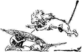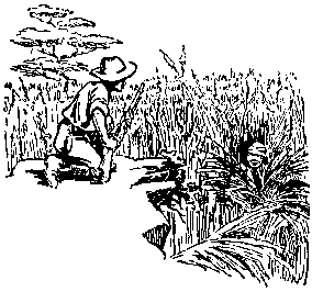 Tendido silenciosa y cuidadosamente hay que apuntar a una empresa difícil. Nota: la sombra en el agua representa la cabeza de un hipopótamo. El mariscal tiene razón. En mi esfera pequeña corno es, siempre he tenido la debilidad de formular planes para las icosas, aún para aquellas sin importancia y después me dedico a ejecutarlas. De aquí el apodo que me pusieron los zulúes de "Imhlala-panzi" que literalmente significa "el hombre que se tiende en el suelo para disparar". Pero que significa aquél que tiene cuidado de dar en el blanco al cual va a tirar y le apunta con la mayor precisión posible antes de hacerlo. Es éste el unico camino seguro para el éxito. Haced de "Imhlala-panzi" vuestra divisa. Algunas veces habrá que auenturarse para tener éxito y entonces es cuando no hay que echarse para atrás sino avanzar con los ojos bien abiertos. Hablando de esto una vez, en compañía de otra persona estaba reconociendo las posiciones enemigas en la tierra de los Matabeles. Durante la noche habíamos conseguido pasar sus líneas avanzadas y a la mañana siguiente nos encontramos detrás de ellas. Mientras nos deslizábamos estudiándolas, nos topamos con un precioso león. La oportunidad era demasiado tentadora. Los dos sujetamos nuestros caballos y, sin parar mientes en el enemigo, disparamos sobre el león, haciéndolo caer. Pero un momento más tarde ya estaba sobre sus patas con un mal humor aterrador y usando un lenguaje indescriptible. paralizados sus cuartos traseros por el disparo. No podía galopar para retirarse y se contentaba con dar vueltas sobre sí mismo husmeando y mirando en todas direcciones tratando de dar con nosotros. No queríamos hacer más disparos de los que fueran necesarios, por miedo de atraer al enemigo sobre nosotros y también por miedo de echar a perder la piel del animal, así pues, me aventuré al cauce del río que estaba seco para acercarme lo más posible y rematarlo mientras mi amigo permanecía en el borde con su rifle apuntando al león para en caso de que éste se decidiera a atacarme. Conforme el león me vio, se avalanzó sobre mí con sus fauces abiertas, arremangados sus labios y los ojos cerrados por el coraje. Le metí un tiro por la boca y lo liquidé. Terminada esta parte con el consiguiente peligro de que fuésemos descubiertos, abrimos bien los ojos. Nos dimos a la tarea de desollarlo (pero si no se cuenta con guantes para hacer esto. muy pronto el cuchillo hace pedazos las manos, especialmente cuando se está de prisa y se trata de una pieza grande). Mientras uno desollaba, el otro estaba atento viendo en todas direcciones y con el presentimiento de que alguien nos observaba constantemente. Por fortuna así lo hicimos: cuando ya habíamos conseguido desollarlo totalmente, el enemigo nos descubrió y apenas tuvimos tiempo de hacer un bulto con la piel, montar nuestros caballos y ponernos fuera de su alcance. Cómo prepararse para una profesión Este esquema fue ideado para un joven que va a iniciar educación en una profesión. Los puntos principales que debe considerar como metas son los puestos en el diagrama "Cómo ganarse la vida" (más adelante). Se me pidió que criticara este esquema y lo que hice fue producir otro diagrama que le servirá de II Parte:
