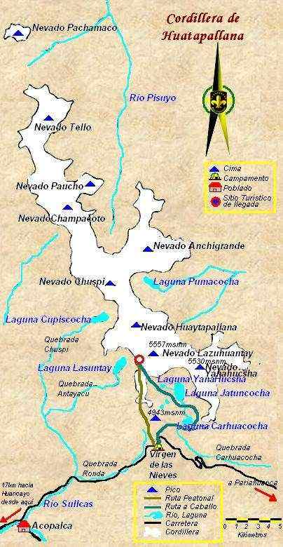 (5.530 msnm), Cochas (5.315 msnm), Chuspi, El Tello,