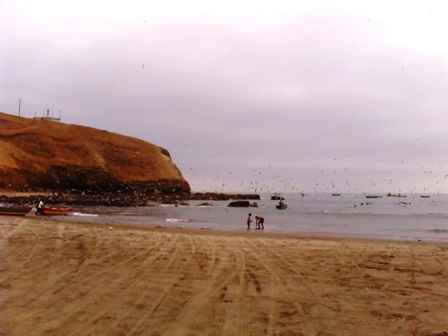 Extensas playas con aves litorales. Hay un morro