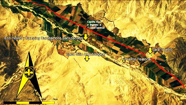 encuentra 2km antes del pueblo de Caral. La ciudad