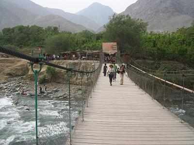 cruzar sobre un puente que cruza el Río Cañete,