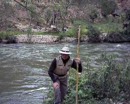 ![]() Maestro Daniel López en el Huaro que cruza el Rìo Utubamba uniendo las orillas de Tingo con Magdalena a la altura de Macro (Foto Maestro Mayor Daniel López)