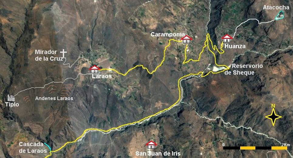 Cruce de caminos a Carampoma, Huanza, Sheque (y hacia