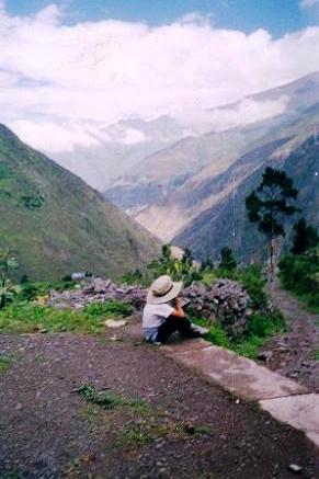![]() Damir viendo el camino desde la Cruz de Churuncancha La direccion en que mira es hacia matucana, siguiendo el camino ne ese sentido llegarìamos a Marachanca, hay que seguirlo en sentrido contrario |