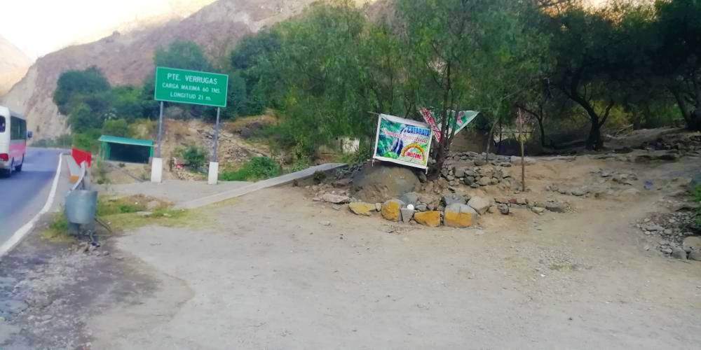ACCESO : Km 60 de la Carretera Central. Aqui esta el acceso a la Quebrada Verrugas y al Puente Carrión. la Margen Derecha corresponde al distrito de San Bartolomé y la margen Izquierda al distrito de San Jerónimo de Surco. Nosotros recomendamos igual ingresar por la Margen Izquierda pues tiene los mejores caminos.