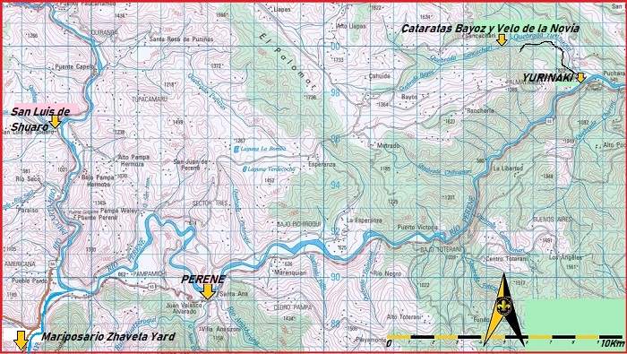 ACCESO: Para llegar desde La Merced, que es un punto de partida común, se puede tomar un taxi o un vehículo particular. El trayecto abarca aproximadamente 26 minutos en automóvil, siguiendo la carretera hacia Perené desde La Marced en dirección hacia el norte y siempre a la margen derecha (río arriba) del río Chanchamayo . El paisaje a lo largo del camino ofrece vistas espectaculares de la vegetación exuberante y las montañas que rodean la región, brindando un preámbulo encantador a la visita.