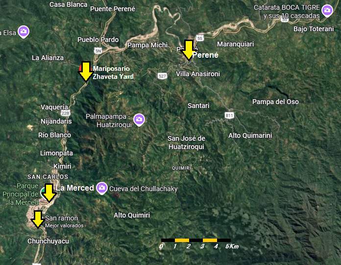 UBICACIÓN: El Mariposario Zhaveta Yard se encuentra ubicado en Carretera Central Km 9, Sector Rio Colorado, en La Merced, provincia de Chanchamayo, departamento de Junín, Perú. Se sitúa a una altitud aproximada de 800 metros sobre el nivel del mar (msnm) Las coordenadas GPS del mariposario son